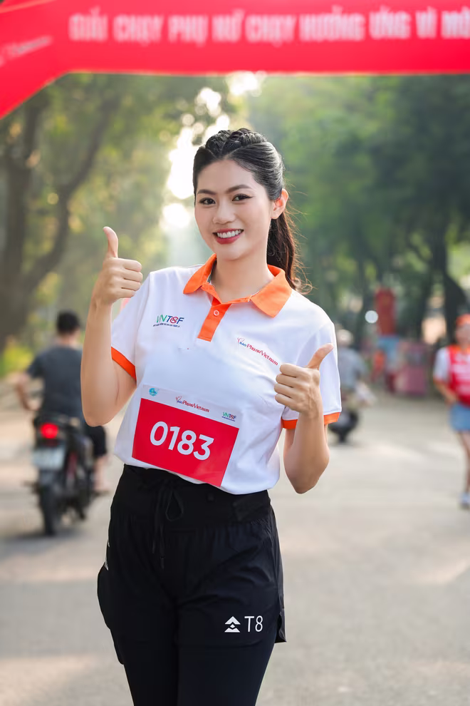 “Thấy các cô, các chị em phụ nữ ở mọi độ tuổi, ngành nghề cùng hòa mình vào hoạt động ý nghĩa này, tôi cảm nhận rõ tinh thần đoàn kết và sự chung tay vì một môi trường sống khỏe mạnh, không khói thuốc. Đó là cảm xúc rất xúc động và đầy phấn khích trong một buổi sáng mùa thu nắng đẹp như hôm nay.” - người đẹp chia sẻ, đồng thời cho biết ấn tượng lớn nhất với cô tại giải chạy này là tinh thần năng động và sự gắn kết giữa các thế hệ phụ nữ Việt Nam.