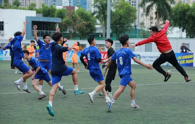 Thầy trò THPT IVS ăn mừng như bay lên, sau khi toàn đội giành tấm vé vào chơi trận chung kết. Đáng nói, trên hành trình của mình, HLV Văn Luyện và học trò trải qua 3 lần thắng luân lưu, cho thấy bản lĩnh cũng như một phần sự may mắn trong mùa giải để đời của họ.